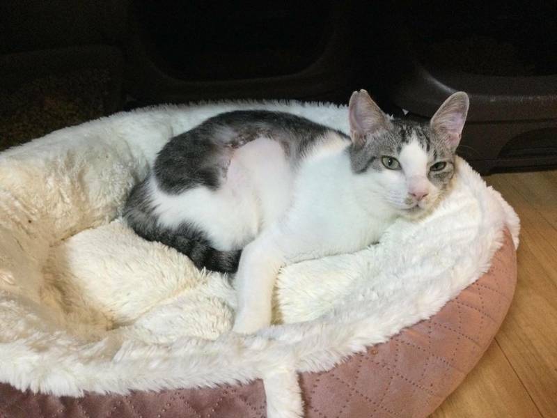 | 特徴(性格など) | ◆ぱげくん ○埼玉県志木市の多頭飼育崩壊現場から保護されました。 ○1歳くらいの、白地にサバトラ斑でハチワレの男の子です。 ○まん丸のお顔とピンクのお鼻&肉球がチャームポイントです。 ○尻尾はまっすぐで長く、サバトラ柄です。 ○とにかく遊ぶのが大好きで元気いっぱいです! ○人馴れしています。また猫同士の付き合いも良好です。 ○体の右側に火傷跡のような脱毛箇所あります。おそらくこの部分に毛は生えてこないと思われます。 ○ぱげくんが出演している動画です。ぜひご覧下さい。 https://youtu.be/VQNA_azMfQo ☆多頭飼育崩壊現場からのレスキューの様子は2020年7月24日の坂上どうぶつ王国で紹介してもらいました! ★ワクチン、不妊手術済み。 ★猫エイズ、猫白血病ともに陰性。 ★★Zoomアプリを使用して、リモートお見合いを設定することも可能です。まずはお申込みください★★ |