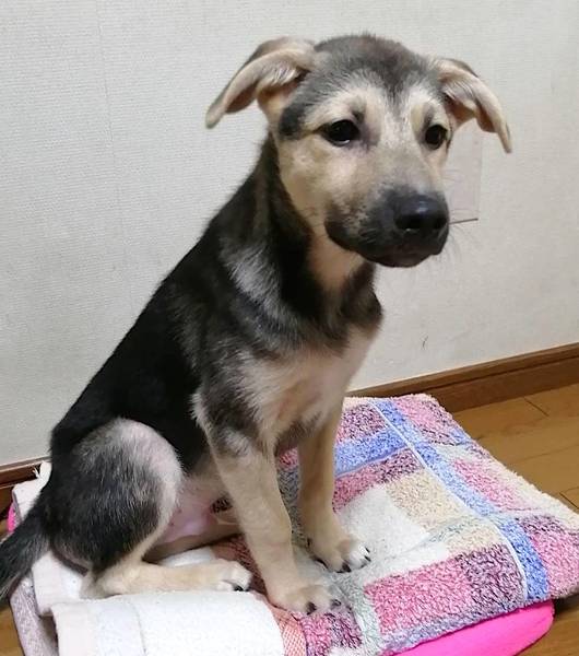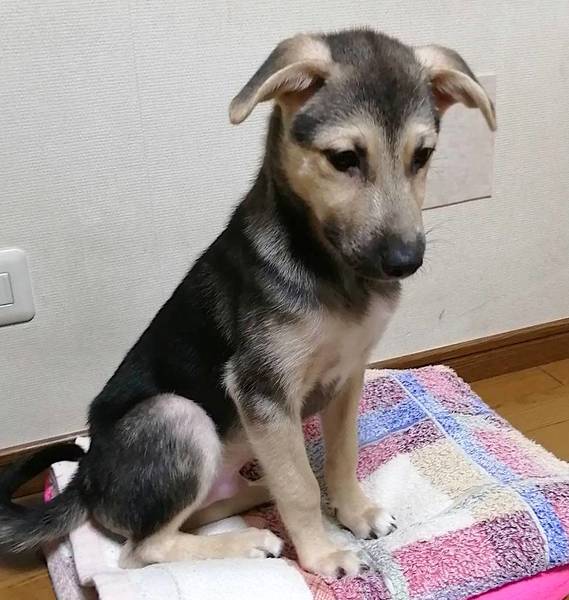 | 特徴(性格など) | 遊ぶの大好きで、すごいスピードで走り回ってます。 カーペットを剥がしてはかみかみ、引っ張り合い等、精力的、気がつくとコロッと寝ます。 人に対しては、まだ少し警戒しますが、自分からは来てくれます。お布団大好きです。 お散歩はこれから練習する予定です。 フィラリア陰性 健康状態良好 食欲旺盛 体重7kg 成犬時10〜15kgと予想 |