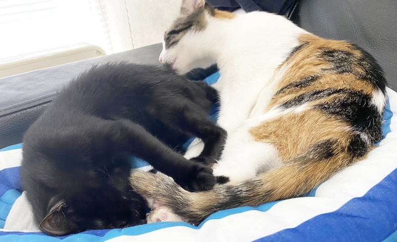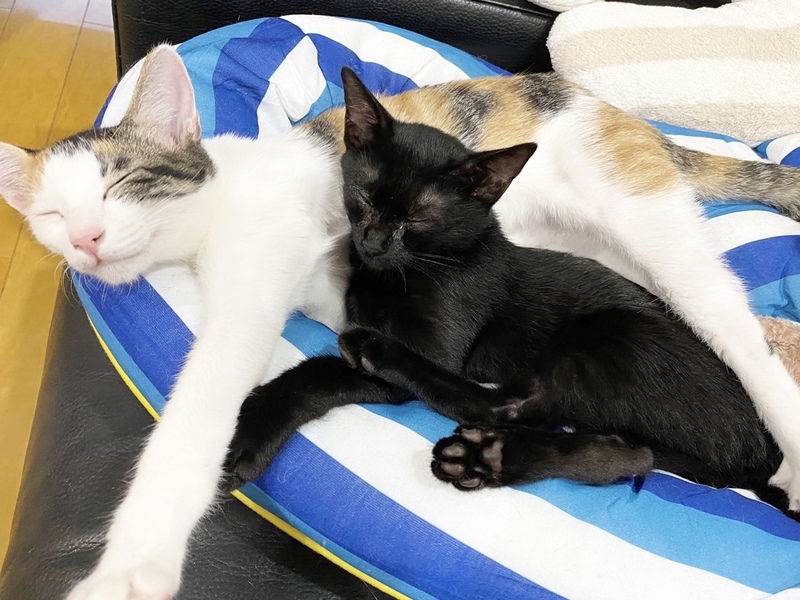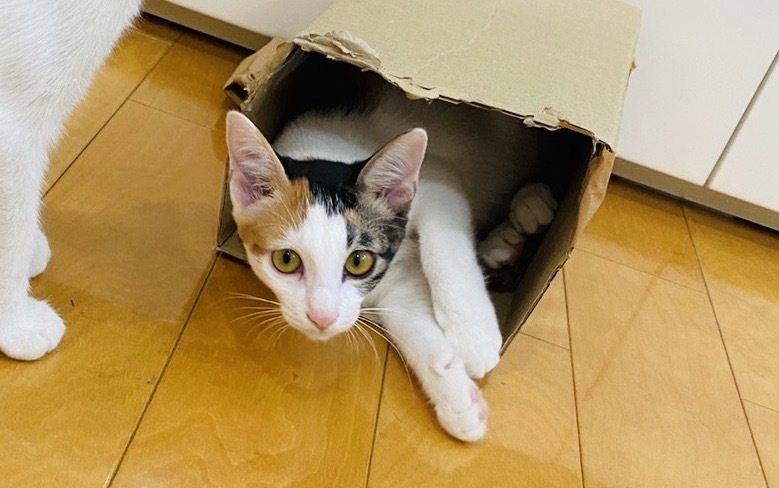 | 特徴(性格など) | 生後二週間弱で兄弟4匹で愛護センターにきました。 授乳が必要な時期に保護されて、ボランティアさんの手から授乳をされて すくすくと育ちましたので、人をお母さんと思っているみたいです。 そのせいか、とても甘えん坊で人懐っこさ抜群です。 三毛の女の子はツンデレが多いと言われていますが、小さい頃の環境で こんなにも性格に影響が出るのかとびっくりするくらい ピッタリくっついてきます。冬が今から楽しみです(*^^*) 身体はとてもスリムですが、好奇心旺盛で運動神経もよく 元気いっぱい遊びます。 明るく元気で、よく食べ、よく遊び、よく寝る花マル娘! そばにいるだけで、こちらがたくさん元気をもらいます。 王道の三毛柄の美人さんです。見た目はザ三毛猫ですが 中身はあんまり三毛猫っぽくないギャップに思わず笑ってしまいます。 どの猫ちゃんとも仲良くできるコミュニケーション能力の高さが素晴らしく 見習いたいくらいです。 まだ子猫ちゃんなのに、自分より小さい猫ちゃんのお世話を積極的にしてくれますし 先輩猫ちゃんに甘えるのも上手です。 多頭飼いをお考えのお宅でも、安心です。白三毛ちゃんとは仲良し姉妹です。 |