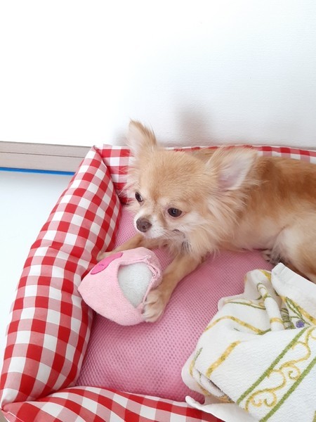 | 特徴(性格など) | ゼリーちゃんのご応募方法は【募集する理由】の欄をご覧ください。 性格・特徴 【性格】 臆病な面もありますが、人見知りもなくいつもおだやかにおっとりしています。 日中は寝ている事が多くのんびりと過ごしています。 撫でると鼻をググッと鳴らして尻尾をふって喜び、遊び始めるとスイッチが入ったかのように、オモチャで遊び始めたり走り回る姿がとても可愛いです。 【ご飯】 ドライフード1日50㌘、1回25㌘を朝夕食べています。 少し残す時がありますが、しばらくすると食べています。 フードは療法食が必要な場合以外は、シュプレモでお願いします。 【トイレ】 トイレシートの認識はあり、上手に排泄できていますが引き続きトイレトレーニングお願い致します。 排泄物は早目に片付けるようお願いします。 【お留守番】 ケージで静かにお留守番できています。 夜もケージのベッドで朝まで寝ています。 【お散歩】 お散歩は始めたばかりで、まだ外が怖いようです。これから少しずつ練習していきます。 迷子札は首輪に刻印式のIDカラーで装着して頂き、ダブルリードご使用のお約束をお願いします。 健康状態 ※ 医療に関しまして、当会では、里親様にお繋ぎするまでに、検査や手術、治療等のレスキュー団体で出来る最大限の努力の上で譲渡活動を行っております。ご理解頂ける方のみご応募ください。 名前 ゼリーちゃん 犬種 チワワ 年齢 5歳くらい 性別 女の子 体温 38.0度 体重 3.35kg 口腔 歯石除去済み 抜歯6本 皮膚 異常なし 眼 異常なし 耳 異常なし 鼻 異常なし 膝蓋骨脱臼 両足G1 鼠径ヘルニア 異常なし 臍ヘルニア 異常なし 乳腺腫瘍 異常なし 心雑音 異常なし 検便検査 異常なし 血液検査 異常なし フィラリア検査 陰性 予防薬投薬2020/8/24 レントゲン 異常なし 避妊手術 済み 心電図 異常なし ワクチン 済み2020/8/17 フロントライン 済み |