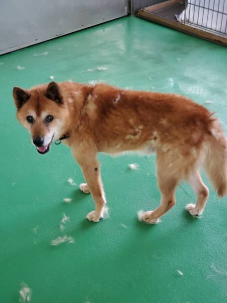 | 特徴(性格など) | 〜9/15追記〜 台風の騒音や他犬との収容のストレスからか、右後肢、大腿部(上部)広い範囲で脱毛し、赤くなっていて滲出液が出て時折噛んだりしていました。 一番範囲が広いのが大腿部で、左腋下部(やや広範囲)、右腋下部(軽度)右腹側部(一か所)、左後肢下部(一か所)など全身的に同様の部位が散見されます。自分で噛む事により急にこのようになったと思われますが、カラーを装着し抗生剤を投与して現在では傷も乾いてきました! 譲渡後、早急に病院受診のできる里親様を募集していますm(_ _)m 中型雑種、三角立ち耳の可愛い男の子が寂しく助けを待っています! 若くはないようで10歳は超えていると思われます。体重も見た目の推定になりますが大体12キロ前後位でしょうか。 可哀想に抜け毛が沢山浮いており、汚れていてブラッシングやシャンプーをしてもらえていなかった様子( ; ; )やってもらった経験が無いから怖いのか、毛玉を取ろうとすると、やめて、と嫌がる素振りをします。 あと人の急な動作に驚く事がありますので声をかけながらそっと、優しい職員さん方が怖くないよ、今度こそは幸せになれます様にと毎日触れ合いながら、一生懸命にお世話してくださっています。 今のところ吠えもせず大人しくてゆっくり尻尾を振って寄ってきますฅ•ﻌ•ฅ 人が居ない時は大体寝ていますが食欲はあり、お座りは出来て手からおやつも食べてくれます(^^) マテやお手は知らない様です。 白内障は見受けられません。でも見えにくいのか?勢い余って指までパクッとする事もあります(^^;; 職員さん達が連れ出してくれるお散歩では普通に歩いていてリードの引きもありませんが急な走り出しなども想定し、どんな子でも油断禁物で脱走、逃走には充分に注意が必要ですm(_ _)m 適切に制御し、この子のペースや体力をみながらお散歩などの時間をしっかり取ることの出来るご家庭を希望しておりますm(_ _)m 捨てられたのでしょうか、迷子でしょうか。何故ここに居なければならないのでしょう。 人間よりはるかに短い犬生なのに。 何故大切な家族を直ぐに探さないのか、 何故最後迄愛せないのでしょうか… 保護時、皮製の赤い首輪にワイヤーリードがついていましたが鑑札や迷子札などは何もついていませんでした。 可哀想に、家族の元へ帰りたい、でも収容されたら帰れません。 言葉を持たない大事な家族を守る為に首輪、胴輪には迷子札、鑑札を必ずつけて頂きたい、そんな状況のままでいたより保護されて良かったと考え、この子に幸せを、温かい本当の本物の家族を見つけたいと願っております⭐︎⭐︎ ゆっくり長い目で見守りながら、辛い過去がある事も踏まえ、人は怖くないんだよと広い心で例え長期戦でもドンとこい^_^と仰って頂ける方、笑顔にしてくださる方、いらっしゃいませんか? どうぞ宜しくお願い申し上げますm(_ _)m ⭐️必ず室内飼育で、譲渡後には速やかな病院受診・健康診断(血液検査、尿便検査、ノミダニ・フィラリア予防やシャンプー等)混合ワクチン、去勢手術をする事が可能な、なるべくお留守番が少ないご家庭。 ⭐️未去勢で片足を上げて排尿します。 室内でのトイレトレーニングには時間がかかると思われますm(_ _)m この点も踏まえ、何かと手がかかり大変ですが(マナーベルトやL字型のトイレ、ペットシートを用意など)覚悟と理解で受け入れて下さる方。この子が穏やかに過ごせる温かなご家庭で、寄り添い見守っていっていただきたいと願っております。 宜しくお願い致しますm(_ _)m ⭐️犬の飼育経験があり愛情を持って接し朝晩のお散歩やコミュニケーションに充分時間をあてられる方、何卒宜しくお願い致します。 ※混合ワクチン、狂犬病予防接種、フィラリア予防実績の有無は不明です。フィラリア陽性の可能性も0では無くあり得ることとなります(>_<) ⭐️この子と共に過ごせる時間があとどの位残されているのか、分かりません。 いずれは介護、看取りも必要になってくるでしょう。 以上の点を踏まえ、この子の置かれている状況、寂しかった、傷付いているであろう心をご理解のうえ、全て受け入れ寄り添いながら愛情を注いでくださるご家庭で余生を可愛がっていただきたいと祈っております。 保健所収容された全ての子達は身勝手な人間による被害者であり、何も悪くありません ( ; ; ) 家族の一員として生涯大切にしてくださる優しいご家庭とのご縁が結ばれ、お散歩から帰っても嫌な檻の中では無い、家族の皆さんとずっと一緒に居られるお家が見つかります様に。 1日も早く温かな愛情を目一杯注がれながら、元気に幸せに生きてほしいです。人間より遙かに短い生涯です。 硬いコンクリートの上、狭い檻の中で、ひたすら優しい素敵な里親様を待ち続けています。 悲しい事にこの世の中、人間に飼われないと犬は生きていく事が出来ません。 捨てる飼い主、探さない飼い主、医療にかけない飼い主、虐待する飼い主…飼い主を選ぶ事も出来