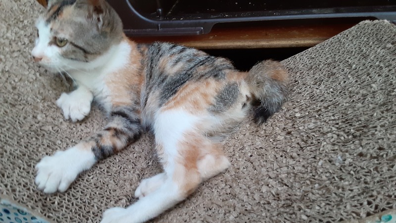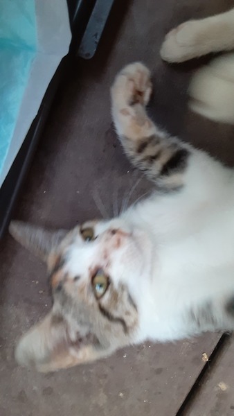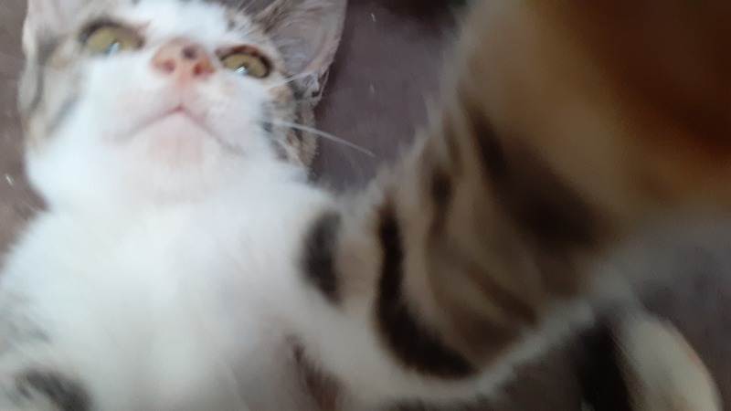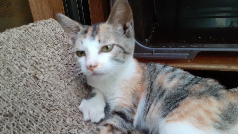| 特徴(性格など) | キジトラと三毛をミックスしたような毛色をしています。 生後ははっきりしませんが、1か月から2か月の間くらい? 見たところ、健康状態は良好です。 目があえば、すぐにゴロゴロ言う人懐こい子です。 おとなしめで、おっとりしています。 膝に乗るのも抱っこも全然嫌がりません。 まだ小さいので、性別ははっきりしないですが、多分女の子です。 くっきりしたアイラインとピンクのお鼻の真ん中にあるホクロのような模様がチャームポイントです。 写真は随時更新していきます。 |