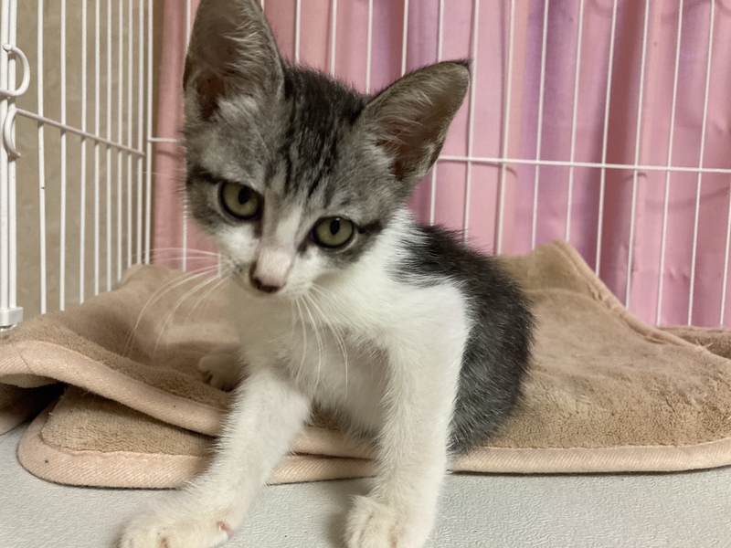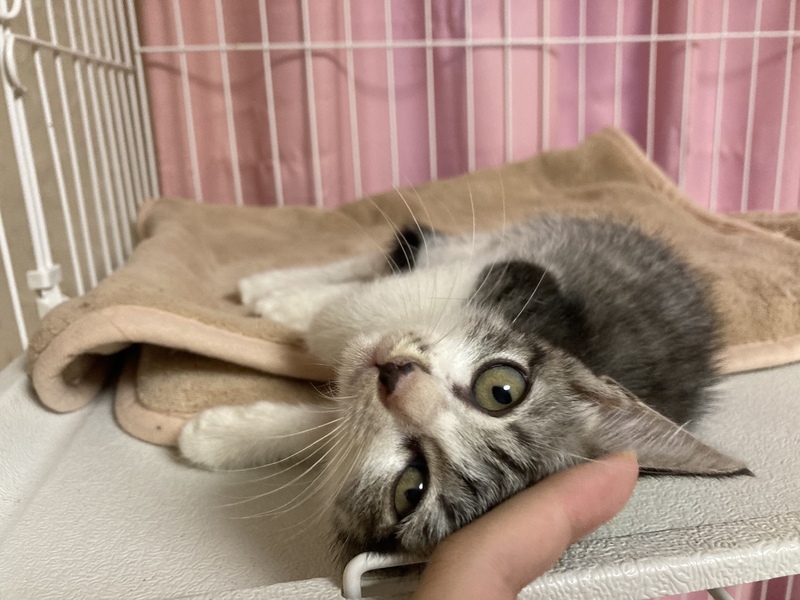 | 里親募集する理由 | 人に遺棄された子猫です。 丸2日、大声で母を呼び、声が枯れるまで鳴き続けていたようです。 次の日が大雨の予報で、このままでは死んでしまうのではないかと思い保護しました。 前日に大人数人に追い回されていたらしく、保護時はパニックになって逃げまわっていました。 |