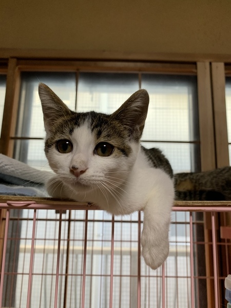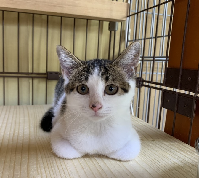 | 特徴(性格など) | 白キジでお鼻のところにホクロがあります。 穏やかで優しい性格で抱っこもできます。 |