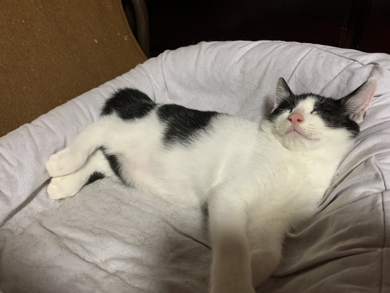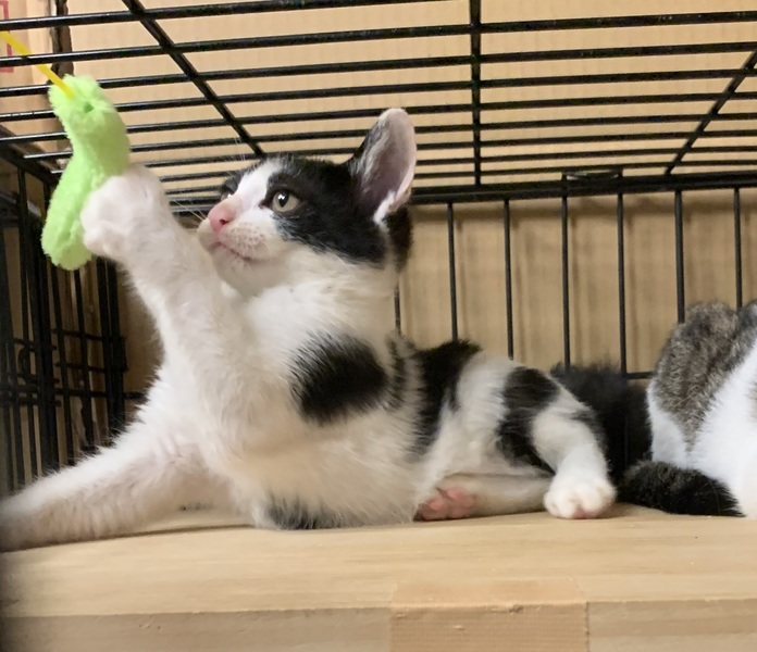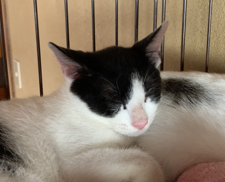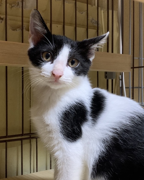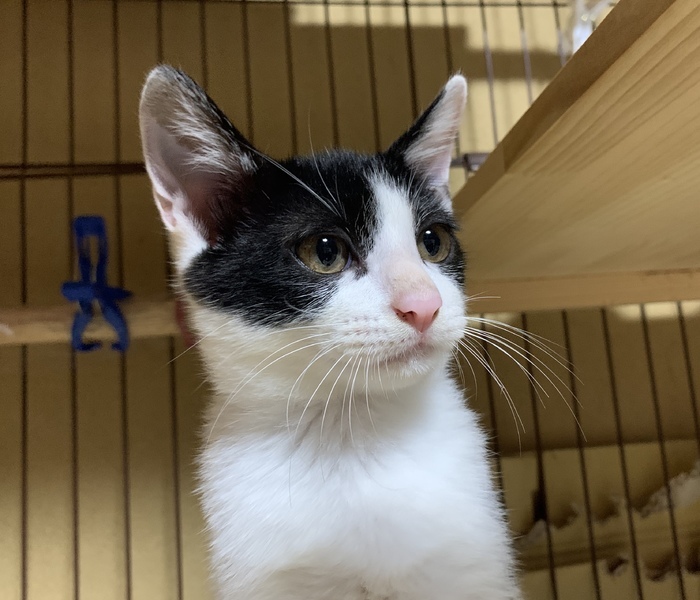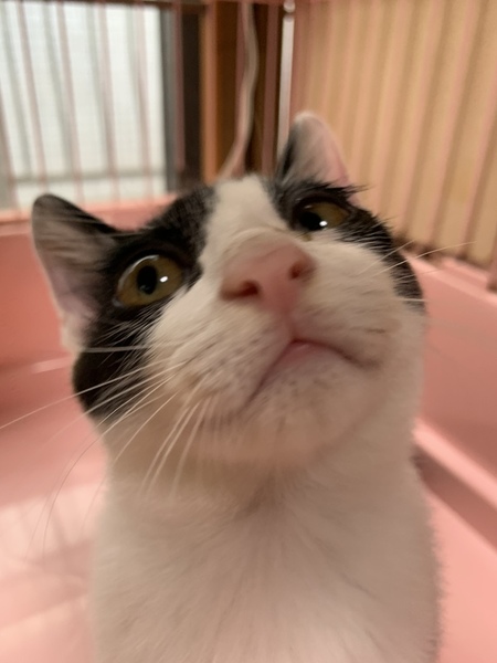 | 特徴(性格など) | 白黒ハチワレ、ピンクのお鼻と肉球です。 好奇心旺盛で元気、たまにおしゃべりする甘えん坊で食いしん坊の可愛い男の子です。 |