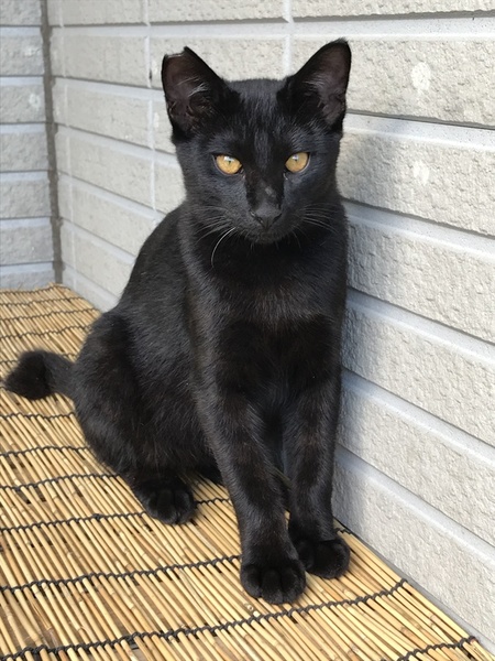 | 特徴(性格など) | 5カ月の男の子でカギ尻尾の猫ちゃんです。黒で目は黄色のイケにゃんです。 去勢手術、ワクチン、ノミダニ予防済み。 あまり人馴れはしていません。 |