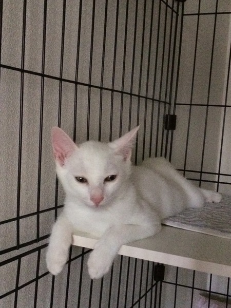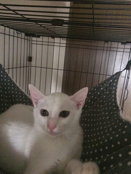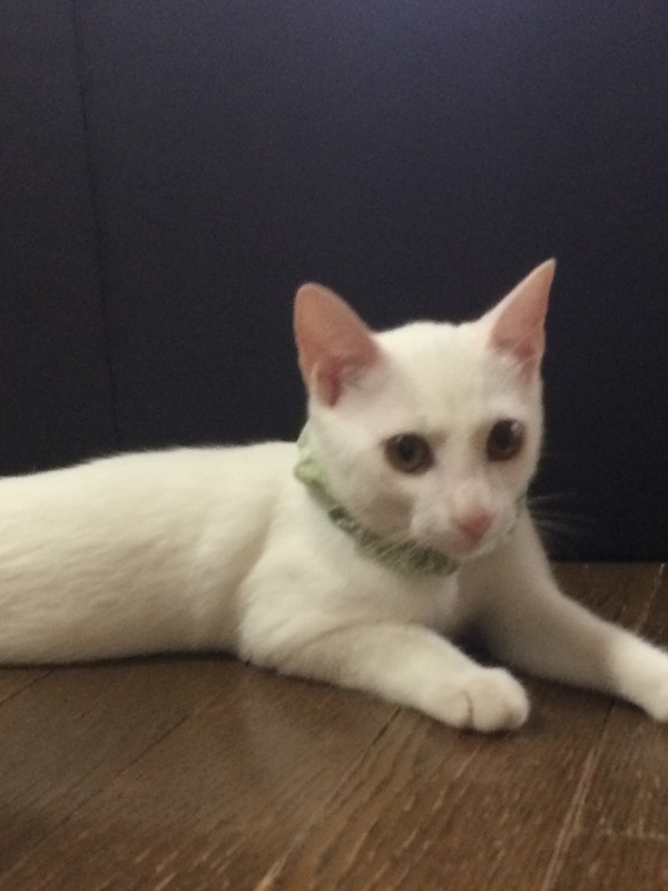 | 特徴(性格など) | 真っ白な綺麗なオス猫です。 少々ビビりですが大人猫との関係はとても良好なので、先住猫ちゃんのいるお宅だとうまく馴染めそうです^_^ |