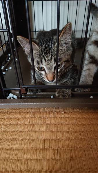 | 特徴(性格など) | 性格は慎重派のキジトラオス君です。 保護してからトイレしつけ済み、だんだん慣れてきています。 |