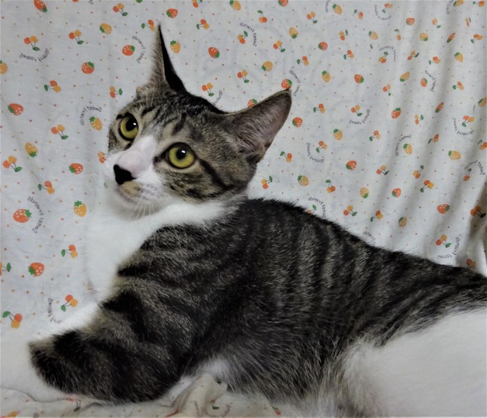 | 里親募集する理由 | 幹線道路近くの工場に居ついている母猫が産んだようです。 捕まえる時に大勢の人がかかわり、工場内に追い詰める形となり、捕獲器に入りましたので、元々のビビリに拍車がかかったようで、保護した時は、威嚇して、震えるような感じでした。 時間をかけて馴らしている所ですが、抱っこも出来るので、後は、経験者の方にお任せしたいと思っています。 | ||
