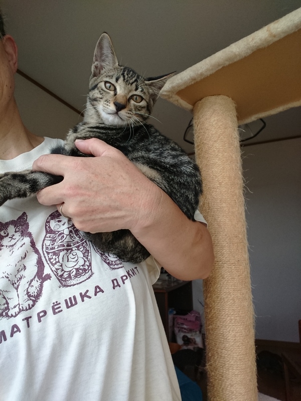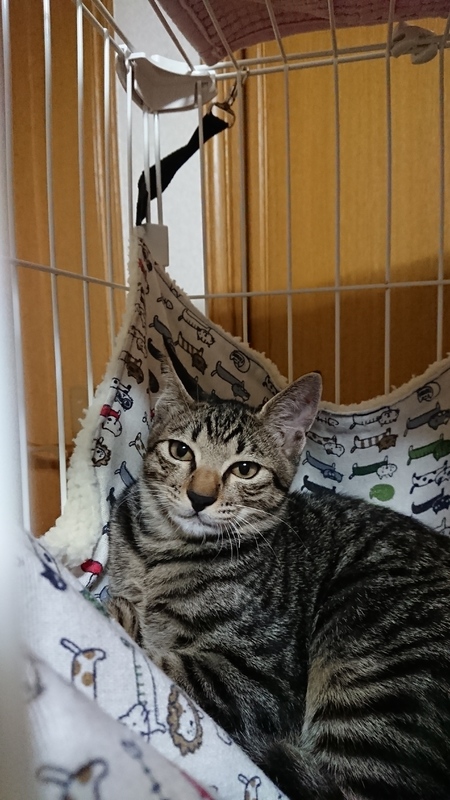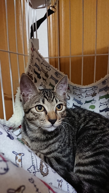| 特徴(性格など) | 遊び大好き「こーるくん」です。 キジトラ兄弟たちとよく遊びます。プロレスや、追いかけっこ大好きです。 とても活発なこーるくん。 元気過ぎて遊びに興奮しすぎて保護後の生後3ヶ月頃、一時期口呼吸になった為動物病院で検査。肺や心臓には異常なしでした。今でま全くそのような症状は見られません。 まだまだ人慣れ訓練中ではありますが、抱っこ大好きです。ダッコされるとそのまま寝てしまう事が多々あります。 黒色が強い キジトラです。 |