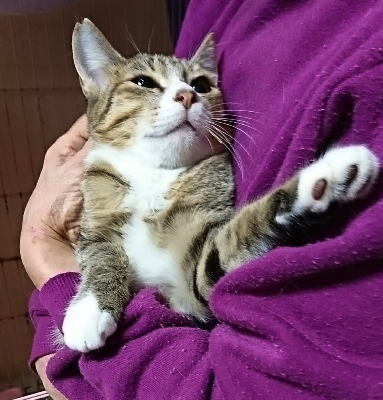| 里親募集する理由 | 代理投稿です。 知人が保護した猫ちゃんです。 知人宅では他にもたくさんの猫ちゃんの面倒を見ていてこれ以上飼うのは難しい状況なのですが、このまま子猫を外に放置しておくと危険も多いため保護したとのことです。 |