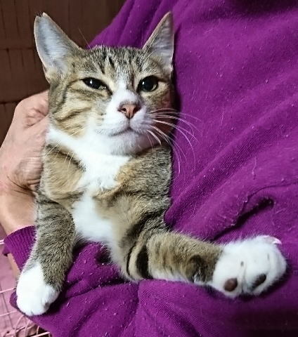 | 特徴(性格など) | 抱っこ大好きなキジ白(むぎわら白?)男の子。 少し怖がりで人見知りもするので、初対面ではシャーッということもありますが、基本は抱っこ好きな甘えっ子さん♪ 慣れると抱っこ要求で寄ってくるようになり、とってもかわいいです♪ 初めは、慣れるまでには少し時間はかかるかもしれませんが、長い目で見て接してくださる優しい里親さん探しています。 ※健康状態※ 健康状態良好です。 ・ワクチン接種済み ・血液検査済み(エイズ、白血病検査→陰性) ・去勢手術済み ※生年月日について※ このサイトのシステム上の関係で4/17で入力していますが、正確な生年月日は不明です。 |