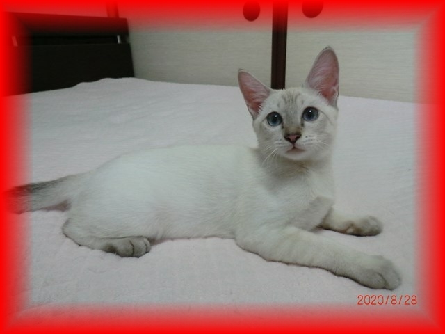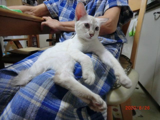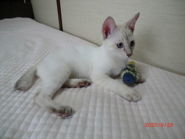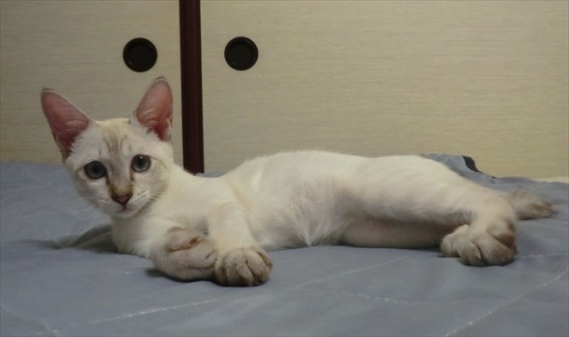 | 特徴(性格など) | 仮称…ナナちゃん 4ヵ月位のシャムミックスの女の子です。 人間大好き&物怖じナシ♪わが道を行くナナちゃんです! 食欲旺盛、元気いっぱいで先住の猫さん達とも仲良く出来てメチャ良い子ですよ♪ どうぞよろしくお願いします。 |