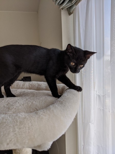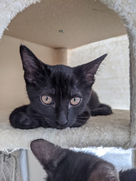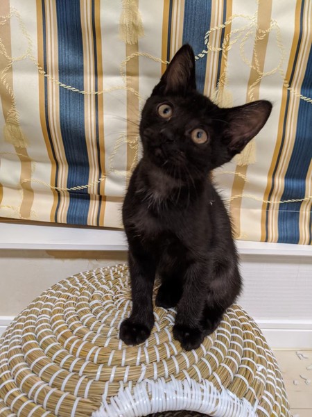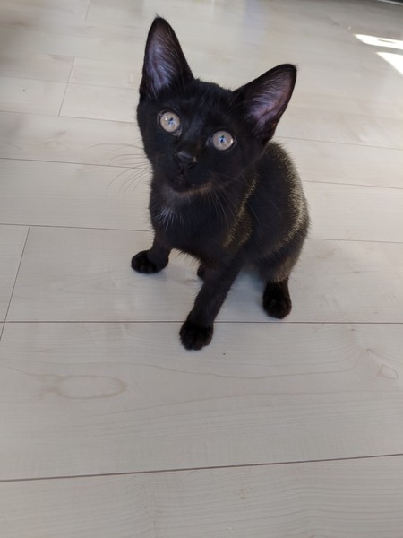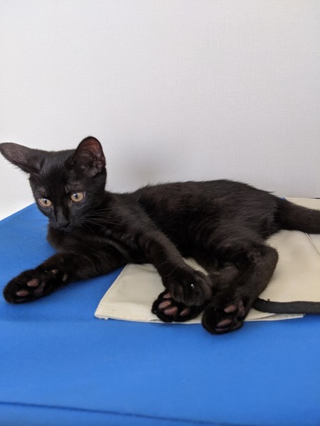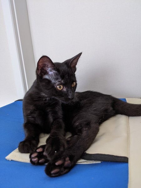 | 特徴(性格など) | 2020.5.10生まれ(推定) 毛色:黒 活発で好奇心旺盛な黒猫です。 色々な年齢の猫とも仲良くできています。 兄弟のモヤと仲良しです。 会話をしてくれてるかのように鳴いてお返事してくれるので可愛いです。 黒猫ですが首の前にネクタイのように白い毛があります。 |