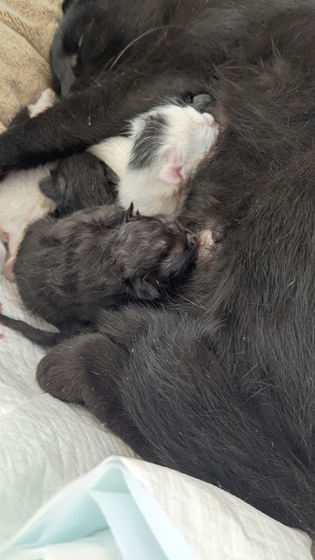 | 特徴(性格など) | 黒4匹 白の鉢割れ3匹 | ||