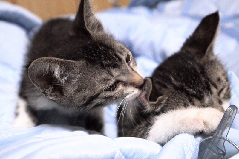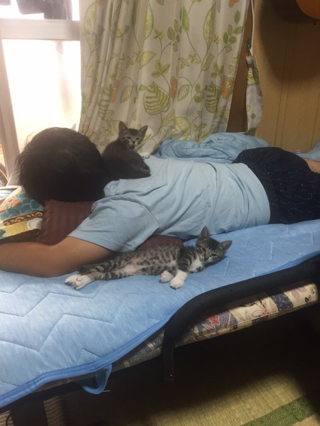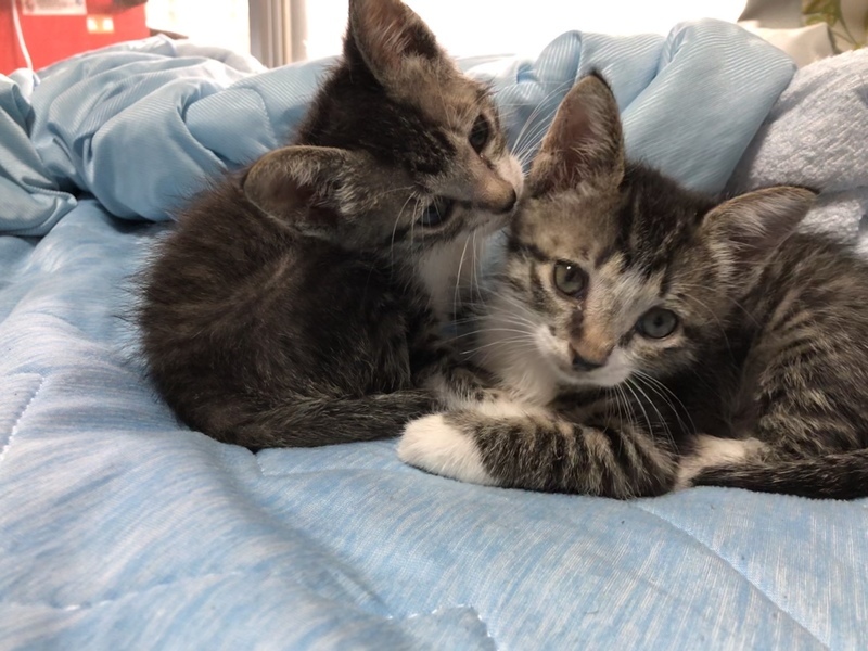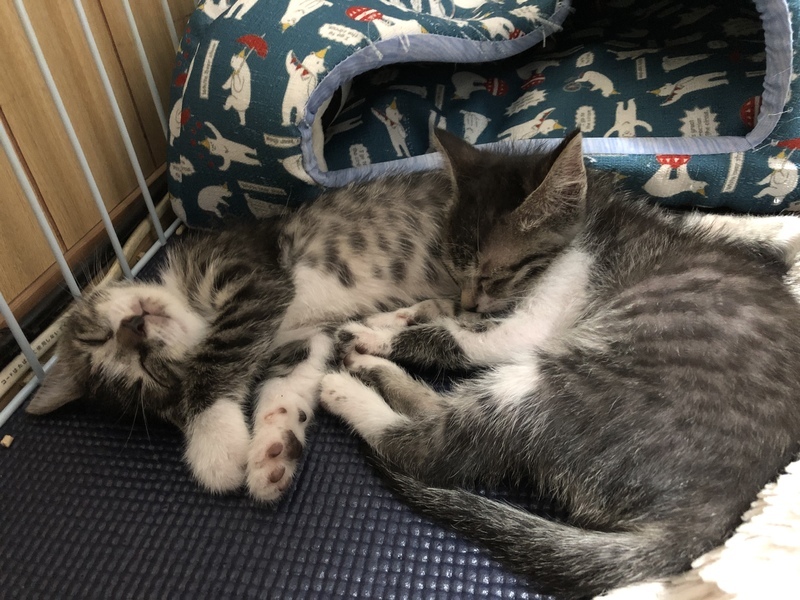 | 特徴(性格など) | 名前:りん.はな 色柄:サバトラ白 りん:活発、甘えんぼ、サラサラ はな:おっとり、マイペース、ふわふわ いつも元気いっぱいにじゃれあって遊んで寄り添って寝たりな仲良しです* うつ伏せで寝てると2匹背中に乗ってきて寝たりしてます* りんちゃんはご飯の後あぐらの上に乗って毛繕いタイムです* はなちゃんは控えめで腕枕派みたいです* お腹ふにふにで気持ち良いです* 産まれたばかりに捨てられ、ミルクをあげて育てたので人に慣れています* 手からもご飯食べれます* 顔近づけると鼻チュウの勢いがすごい⚠︎ 遊びに夢中なタイミングじゃなければ爪切りもさせてくれます* ・健康状態良好 ・離乳食OK ・トイレOK ・ノミダニ駆除済 ・3種ワクチン摂取済 ・エイズ白血病ウイルス陰性(8/26時点) |
