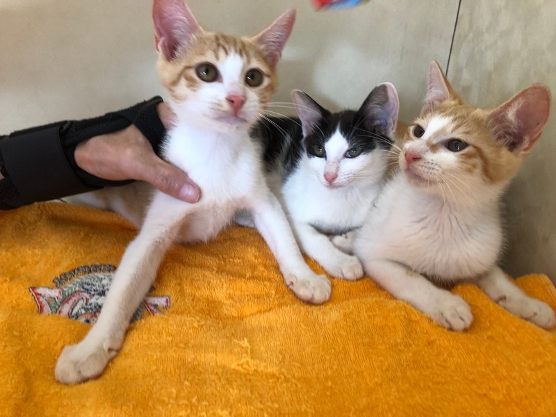 | 特徴(性格など) | 茶白の兄弟は男の子、白黒は女の子、人間大好き可愛い子です。 | ||
