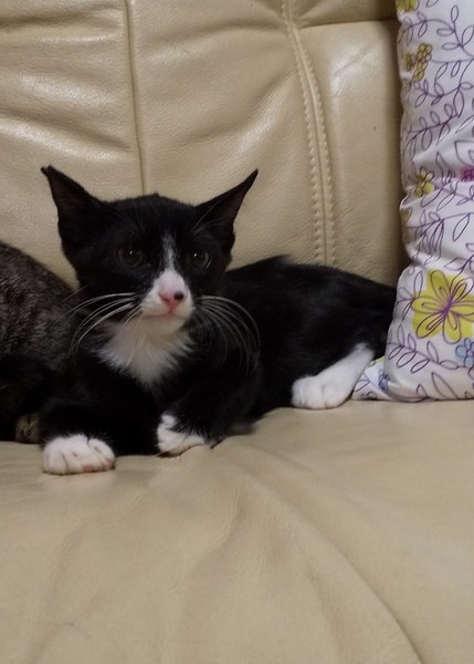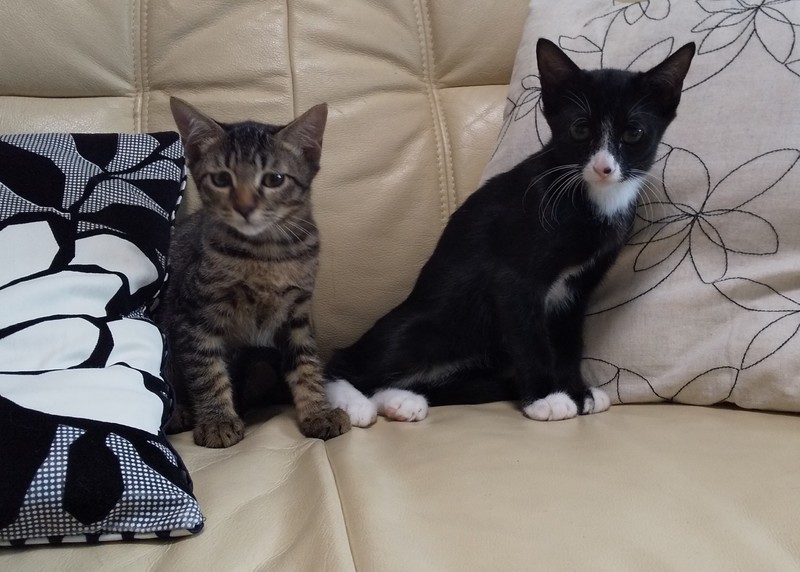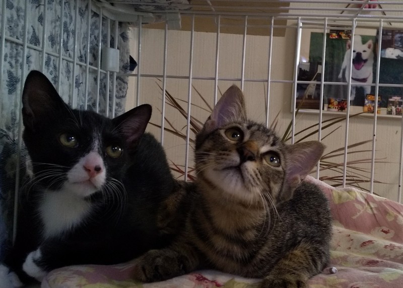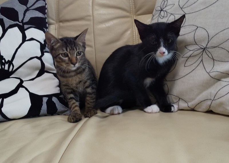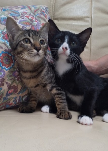| 特徴(性格など) | 白黒とキジトラの兄弟です。 去勢手術済んでおります。 近くに行くだけで喉をゴロゴロならす可愛い子です。日に日に人馴れしてどんどん良い子になりました。 やんちゃでモリモリ食べて元気いっぱいです。 遊び盛りでいつも追いかけっこしています。 |