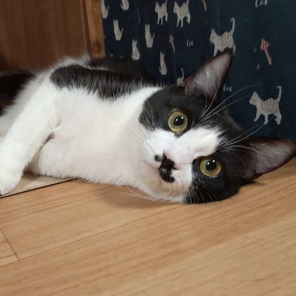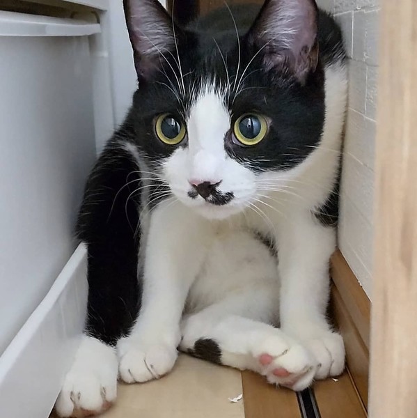 | 特徴(性格など) | 2020.9/5に保護しました。 ハチワレの男の子です。 成ちゃんとは兄妹です。 クリクリお目目がとても可愛いです。 以前に比べると落ち着いてきてケージからも出て過ごしてます。 少し怖がりさんですが穏やかな性格です。 預かりさんのお宅で元気に過ごしています。 |