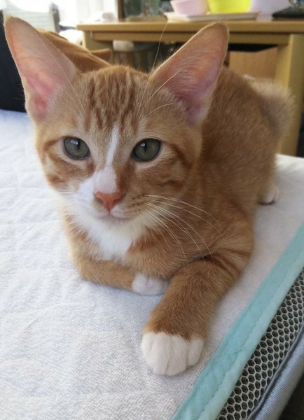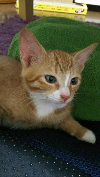 | 特徴(性格など) | 2020.5.25生まれ 毛色:茶トラ 茶トラで鼻筋と足先が白く、真っ直ぐで長いしっぽの男の子。 とても活発で好奇心旺盛です。 兄妹で追いかけっこをしたり、転がるおもちゃで遊ぶのが大好きです。 甘えん坊で座っていると膝の上に乗ってきてウトウトしたりします♡ 食べる事も大好きです。 いっぱい遊んでくれるずっとのお家募集中です。 |