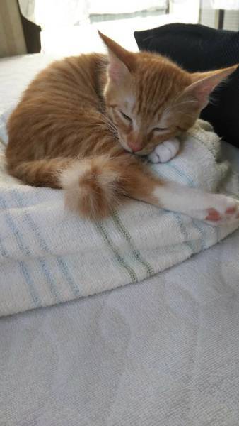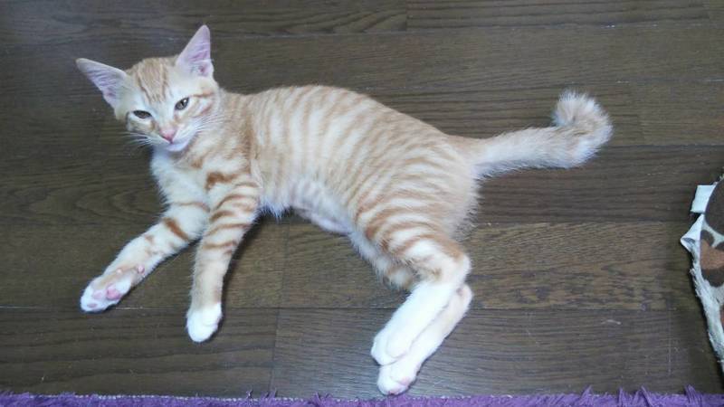 | 特徴(性格など) | 2020.5.25生まれ 毛色:茶トラ カギしっぽで足先が白い茶トラの女の子です。 好奇心旺盛で歩いているとついて来る時もあります。 兄妹で追いかけっこしたり、小さいおもちゃをくわえたり、転がしたりして遊びます。 食べる事も大好きです。 いっぱい遊んでくれるずっとのお家募集中です。 |