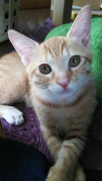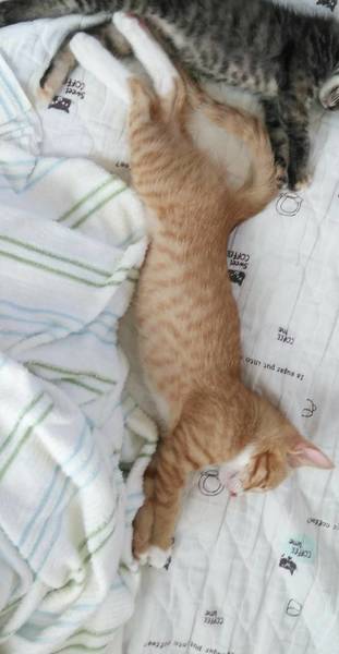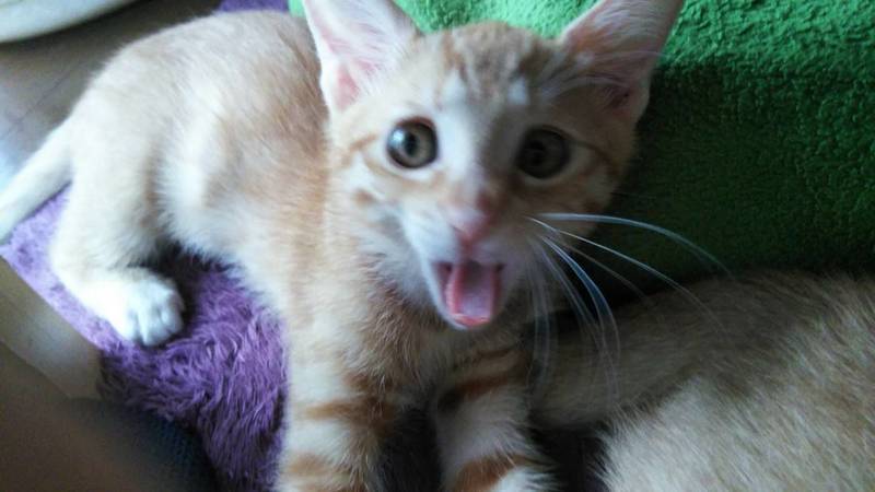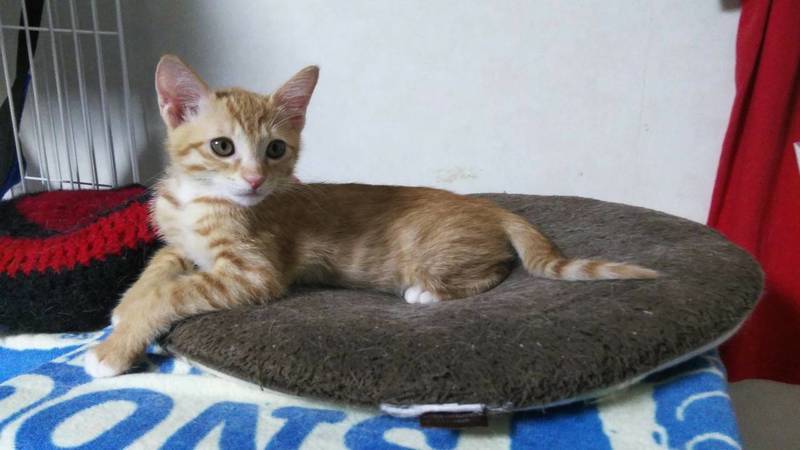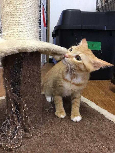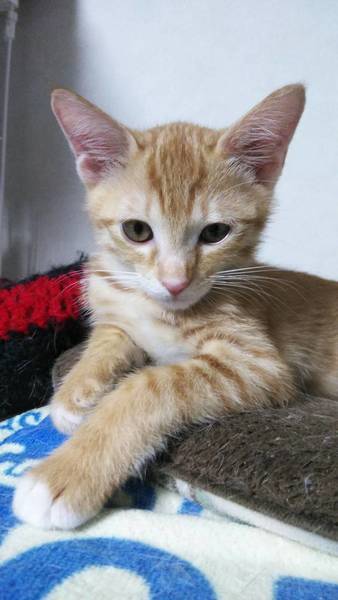 | 特徴(性格など) | 2020.5.25生まれ 毛色:茶トラ 細長いしっぽで足先が少し白い茶トラの女の子です。 マイペースでよく寝ます。 兄妹で追いかけっこも大好きです。 最近よく甘える様になりました。 頭から背中しっぽまで、なでててあげると喜びます。 窓から外を見る事、食べる事も大好きです。 いっぱい遊んでくれるずっとのお家募集中です。 |