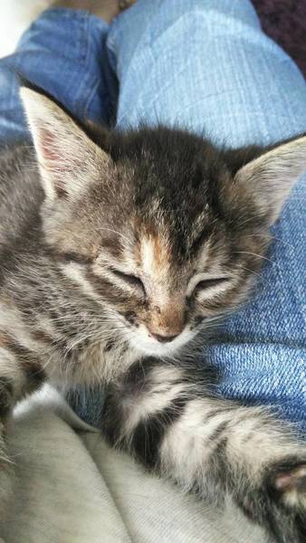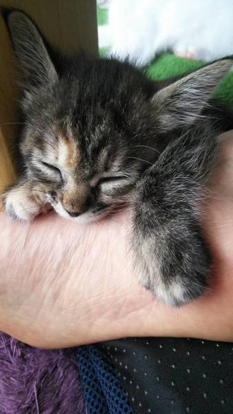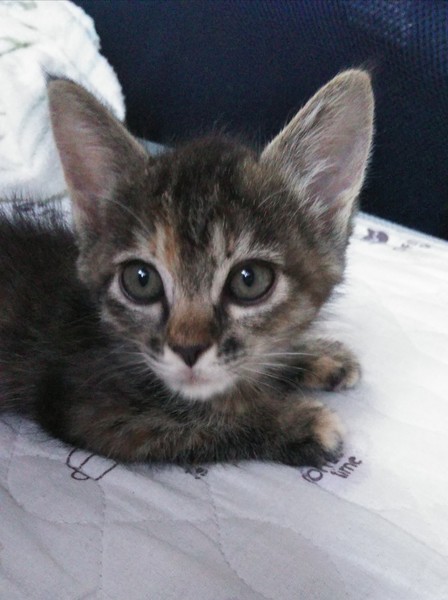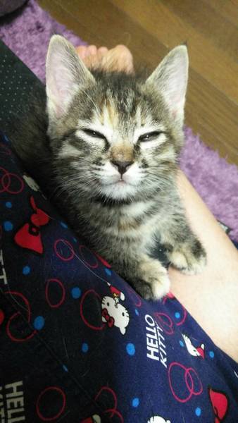 | 特徴(性格など) | 2020.6.26生まれ(推定) 毛色:サビ キジ柄っぽい、サビ猫の女の子です。 消防署で1匹で保護されましたが、今は少し大きい4兄弟姉妹と毎日元気に走り回っています。 座っていると体をよじ登ってきて顔を舐めようとします。 人にも猫にも甘えてきます。 食べる事が大好きでご飯を用意するとハスキーな声で催促します。 いっぱい遊んでくれるずっとのお家募集中です。 |