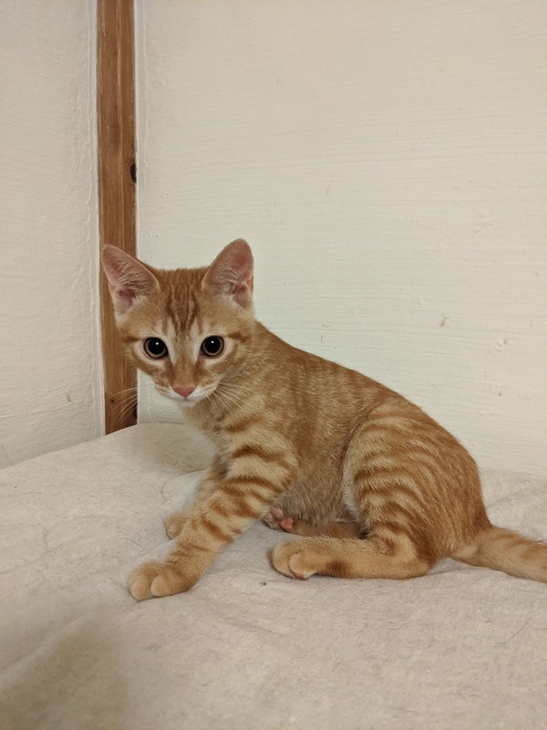 | 特徴(性格など) | 茶トラでしっぽの長い男の子です。 甘えん坊で抱っこが好きなので近くで見つめてくるのがかわいいです。 |