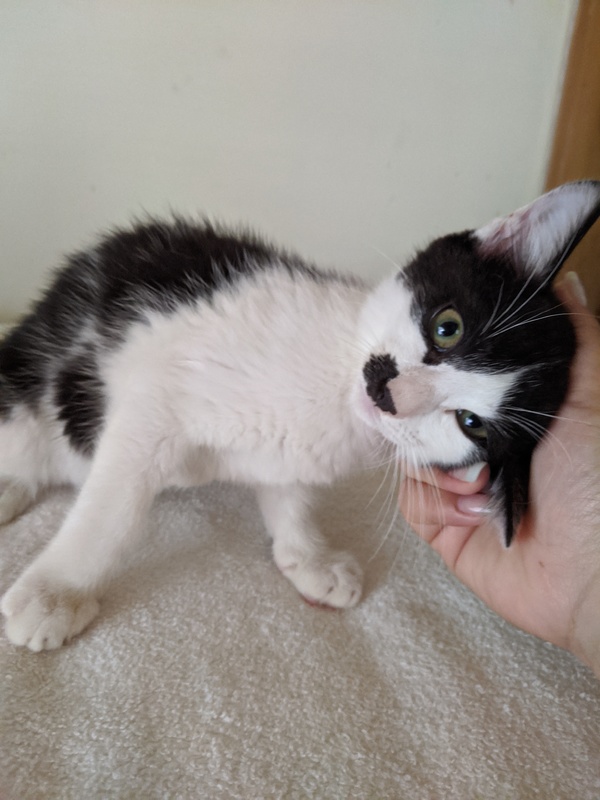 | 特徴(性格など) | 尻尾の長い白黒の男の子です。 食いしん坊でよく食べます。 甘えん坊なのでたくさん甘やかしてくれてる方を希望します。 |