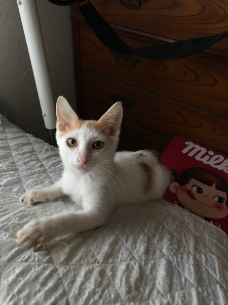 | 特徴(性格など) | 良き相棒になるネコちゃんです(* ´艸`) 白が多めの茶白です 今はまだ痩せて、お顔少し大人びておりますが将来は素敵な猫になると思います。 性格がとても良く人も猫も大好きな仔です。 初めて猫を飼う方も同年代の先住猫さんがいる家庭でも問題ないと思います。 手足が長く尻尾も長いです。 ウイルス検査 エイズ白血病陰性 ノミダニ駆除済み |