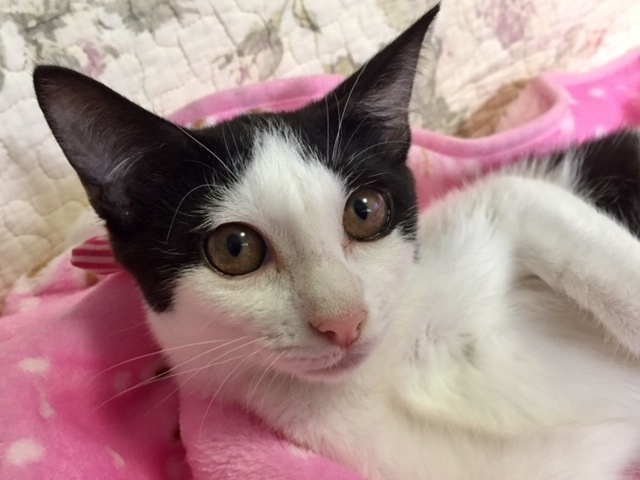 | 特徴(性格など) | きれいなハチワレ白黒の女の子めりぃ♪ すらっと長いしっぽがチャームポイント。 ちょっと恥ずかしがり屋さんですが心を開くと甘えん坊です! 撫でるとゴロゴロと嬉しがります。 利発で子猫らしくやんちゃ。好奇心旺盛!遊び大好き♪ 高いところが大好きでスルスルと登ります♪ ❤尻尾はすらっと長い ☆ワクチン済 ☆ノミダニ取り済 ☆ウイルス検査(エイズ・白血病)陰性 ☆駆虫済 ☆トイレしつけ済 ☆不妊手術・マイクロチップ済 |