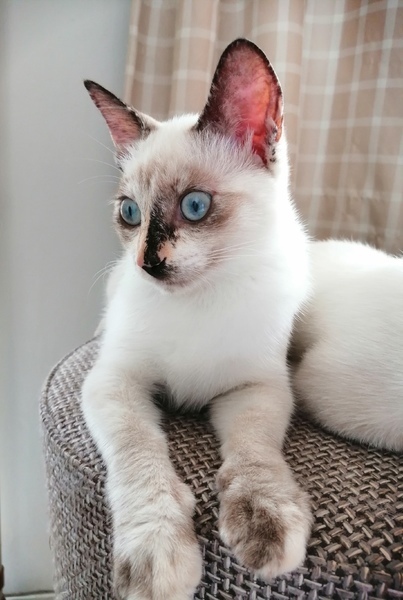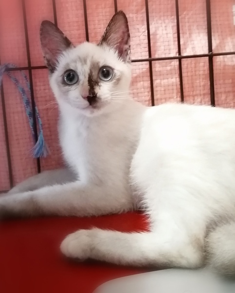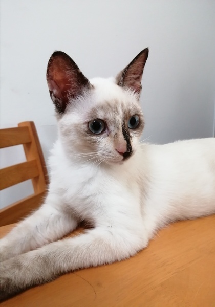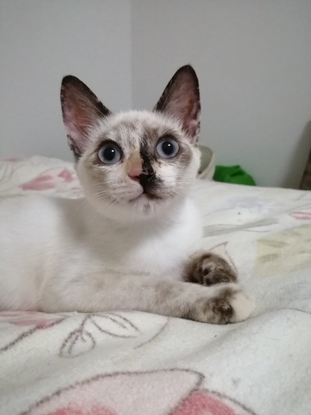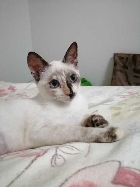 | 特徴(性格など) | シャムミックス系 穏やかで、他の猫ちゃんとも じゃれあってなかよしです とても個性的なお顔です 美しいブルーの目 うちの猫たちとも すぐに仲良くなりました 穏やかで 甘えん坊さんです 元気いっぱいです 広い心で見守って下さい 人馴れしております |