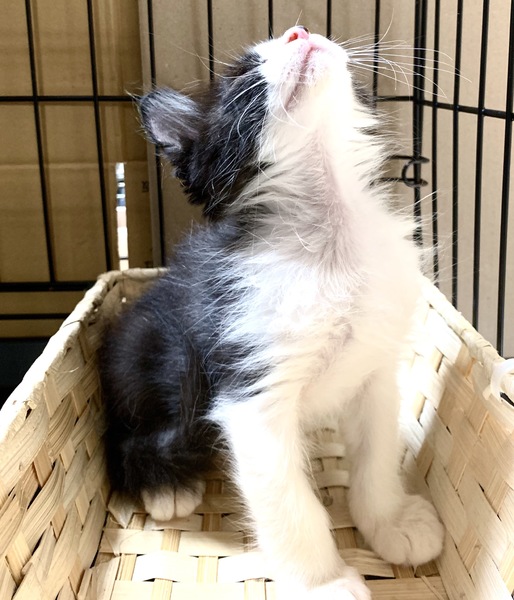 | 特徴(性格など) | ハチワレのモフモフさん! チョットグレーかかった子猫です。 よく遊べる子猫です。 |