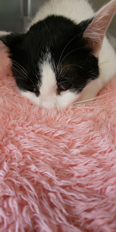 | 特徴(性格など) | 白黒のはちわれちゃんです。 すりすり甘えたですがやや怖がりで最初は隠れたりします。 どちらかと言えば女の人が好きみたいです。 エイズ・白血病陰性です。 |