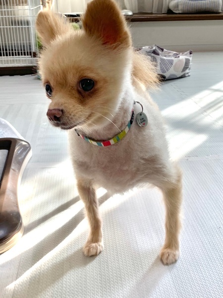 | 特徴(性格など) | チロちゃんのご応募方法は【募集する理由】をご覧下さい。 名前 チロちゃん 犬種 ポメラニアン 年齢 5歳くらい 性別 女の子 体温 38.3度 体重 4.2kg(適正体重3.7kg) 口腔 歯石除去済み 抜歯1本 皮膚 異常なし 眼 異常なし 耳 異常なし 鼻 異常なし 膝蓋骨脱臼 左G2 鼠径ヘルニア 異常なし 臍ヘルニア 異常なし 乳腺腫瘍 異常なし 心雑音 異常なし 検便検査 異常なし 血液検査 異常なし フィラリア検査 済み 陰性(近日投薬予定) レントゲン 異常なし 避妊手術 済み 心電図 異常なし ワクチン 済み (2020/ 8/27) フロントライン 済み 【特記事項】 膝蓋骨脱臼が悪化しないよう、床にカーペットを敷いて頂くなどお気をつけ下さい。 [性格] 誰にでも尻尾をフリフリと振ってくれる愛想の良い子です。控えめな甘えん坊さんです。 犬用のおもちゃではあまり遊びませんが、最近ヒヅメを噛むようになりました。 [ご飯] ドライフードを30g×2回食べています。 ドライフードだけでは食べない為、鶏胸肉やお野菜を茹でたトッピングを混ぜています。 体重が増えてしまうようであれば、食事量の見直しをお願いします。 フードは療法食が必要な場合以外は、シュプレモでお願いします。 [お散歩] 初めは怖くて歩けず抱っこでのお散歩でしたが、今ではゆっくりと歩けるようになってきました。 散歩中にお友達と会ったことはないので、他のわんちゃんとの関わりはまだわかりません。 お散歩での排泄はまだしていません。 迷子札は、首輪に刻印式のIDカラーで装着して頂く事と、ショルダー型ダブルリード使用のお約束をお願いします。 [トイレ] シートの認識はありますが、まだ外すこともあります。おやつをあげながらトレーニング中です。 長い目でのトイレトレーニングをお願いします。 [お留守番] ケージで上手にお留守番できます。 |
