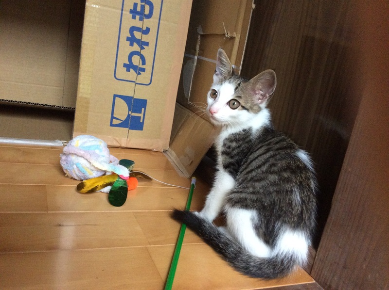 | 特徴(性格など) | サバトラシロの可愛い男の子です。 世話している人にはなついて、なでるとすぐにゴロゴロ言います。 おもちゃで元気に遊びます。トイレのしつけもばっちりです。 9/1に動物病院にてノミダニ・寄生虫駆除しました。 |