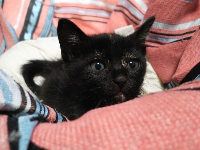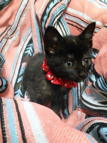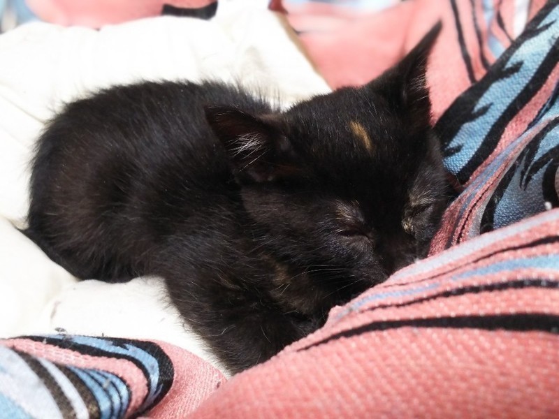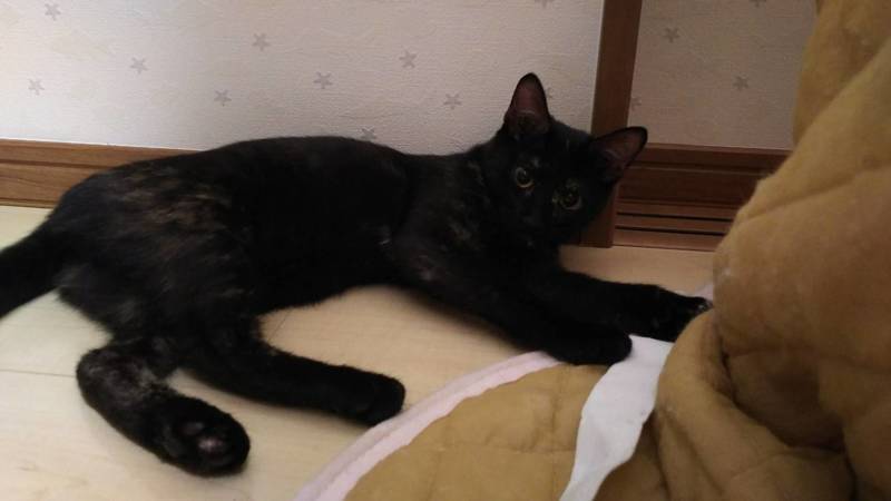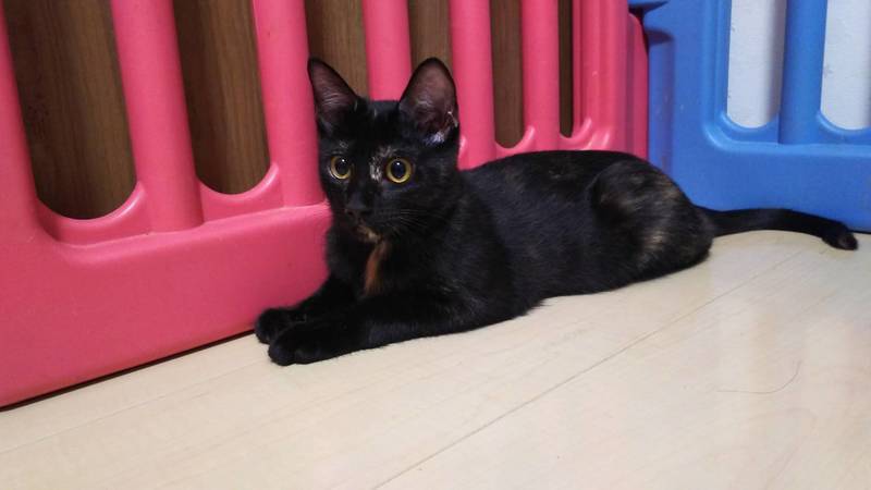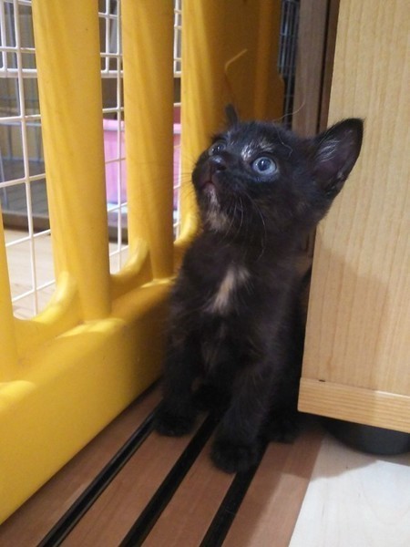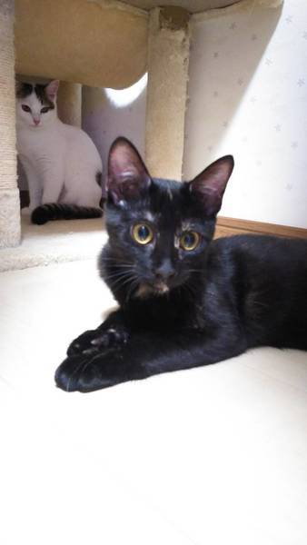 | 特徴(性格など) | 黒柄ですが所々に茶色の模様があります。 サビ柄なのかな? 成長していくとはっきり、模様も出てくると思います。 それも楽しみの1つですね。 人なっこい子です。 元気に過ごしています。 |