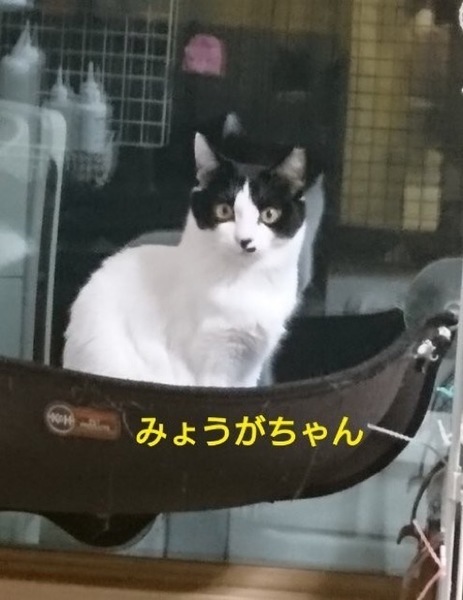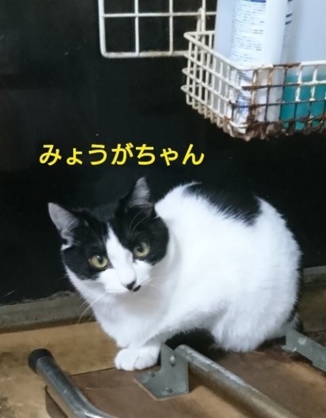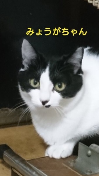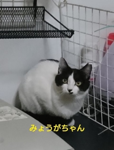 | 特徴(性格など) | 仮名「みょうがちゃん」 ワクチン済み、駆虫済み、ウイルス検査白血病、エイズ共に陰性 白黒の女の子 自ら人に寄ってきて甘えるタイプではありませんがおとなしい性格です。 猫じゃらしなどオモチャは好きで人と一緒に遊ぶ事は出来ます。 家庭に入れば徐々に自分から人に寄っていく様になってくると思います。 中学生以上でしたらお子さんのいるご家庭でも大丈夫です。 また他の猫とも仲良くやれるタイプなので先住さんがいるご家庭でも大丈夫だと思います。 小柄な可愛い女の子です。 |