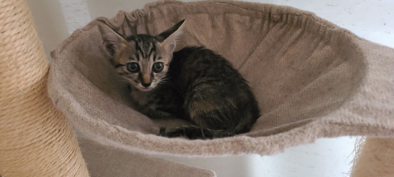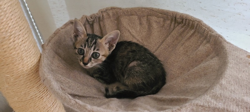 | 特徴(性格など) | キジトラの、好奇心も食欲も旺盛な、遊び盛りの元気いっぱいの女の子です。 人にもよく慣れており、膝の上で寝たり、他猫にもスリスリしていく甘えん坊です。 おトイレも失敗したことがありません。 |