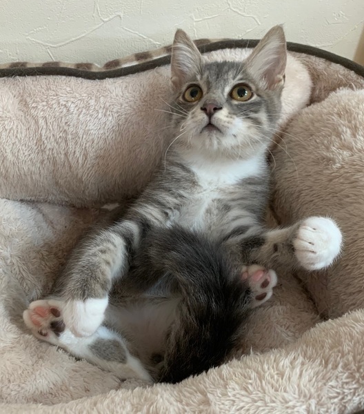 | 特徴(性格など) | 【仮名】ジャックくん 【性格】キレイなグレーキジトラのジャックくん♪ でも・・・未だかつてないほどのぼくちゃんです(泣) とにかくかまってほしくて いっつも人の周りをウロウロ(笑) おヒザに乗ると嬉しすぎて ゴロゴロが止まらなくなります(笑) しかもこの月齢にして1日1回は にミルクを飲みたがります( ゚Д゚) 遊ぶのも全力で自分よりちっちゃい子達も お構いなしで疾走します(笑) ホント見ていて飽きないコですよ♪ まだまだ遊び盛りなのでイッパイかまって めいいっぱい遊んであげて下さい♪ 一緒に過ごしている兄弟のキングくんや ホープくんとの一緒のお迎えを希望します♪ ※1ピキ譲渡不可 |