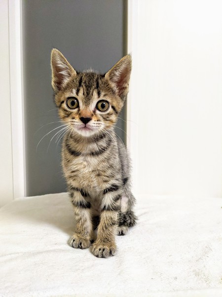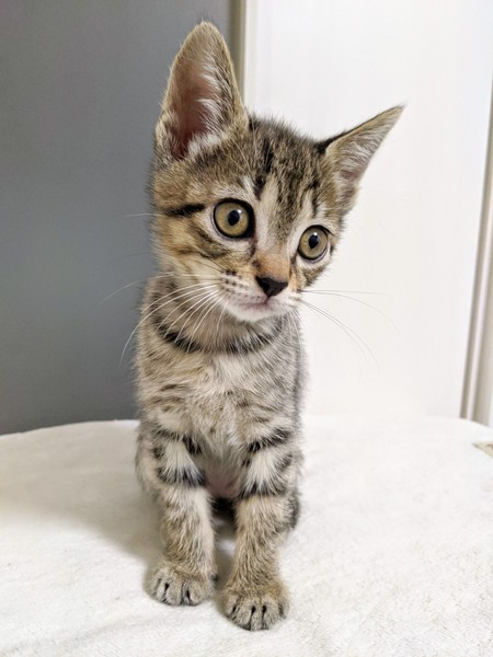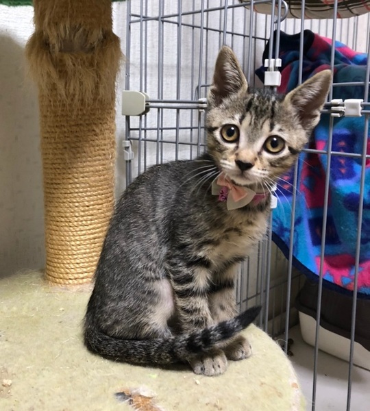 | 特徴(性格など) | 2020.7.7生まれ(推定) 毛色:キジトラ 大きなおめめが印象的なスレンダーボディのキジトラ女子! 普段はあどけない表情なのに、何か気になるものを見つけると瞳をくるくる光らせ獲物を狙うハンターに変身!! 好奇心旺盛で活発な女の子♪ 甘え上手で抱っこも大好き♡ コロコロ表情が変わるので見ていて飽きません。 かわいい表情で癒してくれるだけでなく、一緒にいると楽しいタイプです♡ |