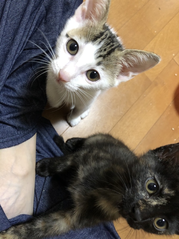 | 特徴(性格など) | サビ猫の女の子と白トラ、ぶち模様のボブテールの男の子です。 元気でトイレもきちんとします。 |