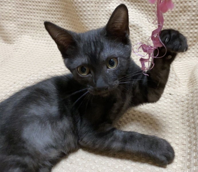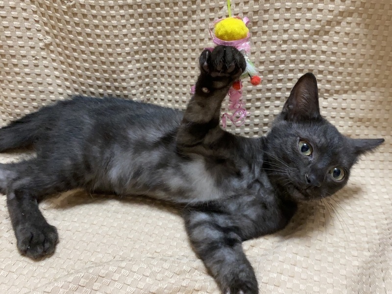 | 特徴(性格など) | 【仮名】なぎくん 【性格】クロとシルバーグレーのMIX毛並みが 超イケてるカッコイイなぎくん♪ いわゆるスモークってヤツですね あまり見ないシルバーアッシュのコが 将来どんな美ネコになるか楽しみです♪ 人馴れもバッチリで遊ぶのも大好き♪ こんなコとなら色々自粛の世の中でも 毎日楽しく過ごせるでしょうね♪ 一緒に暮らしている兄妹or 同世代にゃんことのお迎えを希望します♪ ※1ピキ譲渡不可 |