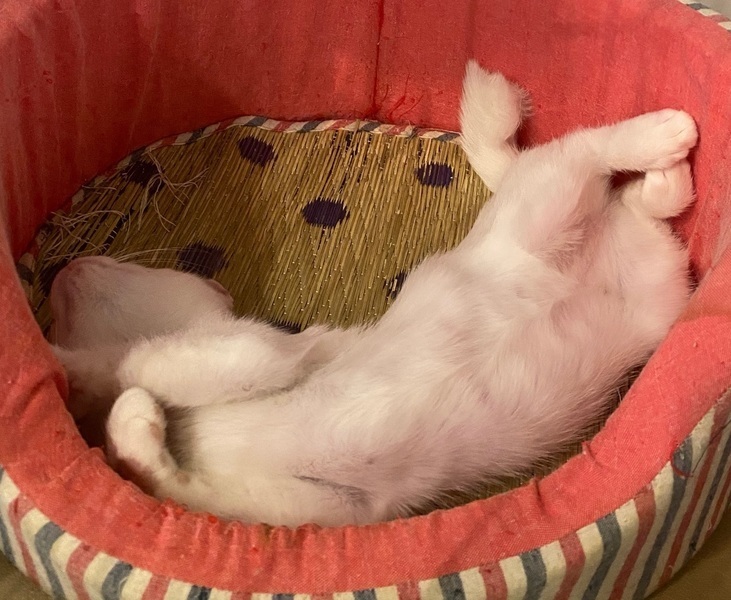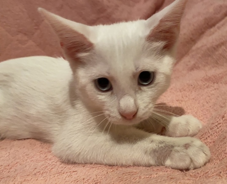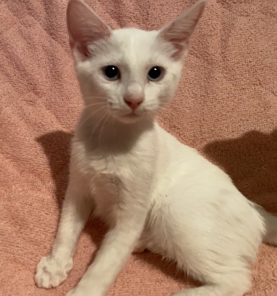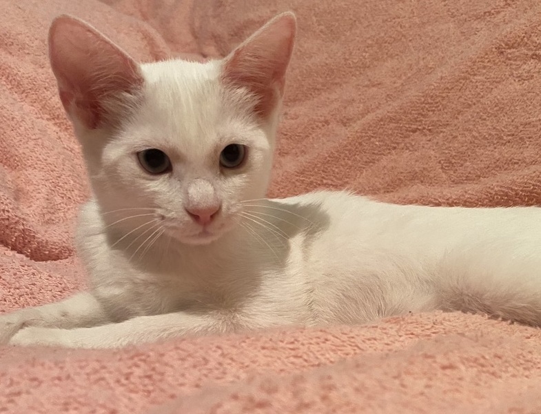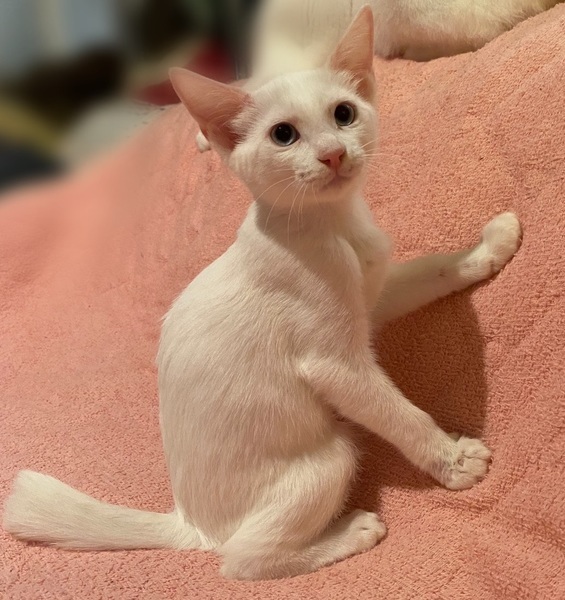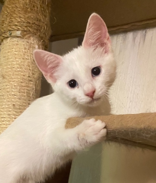 | 特徴(性格など) | 【仮名】メルちゃん 【性格】ホントにマッシロケで純白のメルちゃん♪ 薄いブルーアイもポイント高しですグッ 人馴れもバッチリで甘えるの大好き♪ 遊ぶのも中々ですが構ってもらえると 分かると飛んできます(笑) こんなコとなら色々自粛の世の中でも 毎日楽しく過ごせるでしょうね♪ 同世代にゃんことのお迎えを希望します♪ ※1ピキ譲渡不可 |