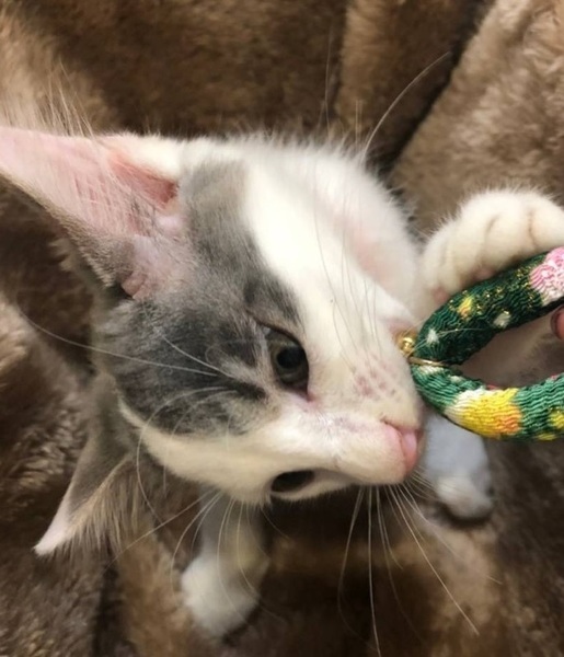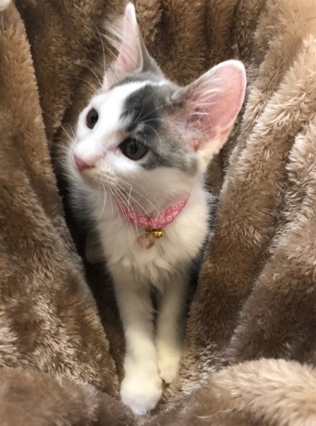 | 特徴(性格など) | 【仮名】モコちゃん 【性格】半長毛フワフワでバリカワなモコちゃん♪ おでことシッポのグレーカラーもGOODです♪ おっとり系の性格でポヤ~っとしてるので 思わず守ってあげたくなります☆ 遊ぶのもまだまだヘタクソでチョットどんくさいのが またカワイイ! まだまだちっちゃいのでお留守番の短い方 同世代にゃんことのお迎えを希望します♪ ※1ピキ譲渡不可 |