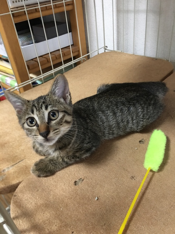 | 特徴(性格など) | キジトラ ビビリさんですが、だいぶ馴れてきました 尾長できれいな男の子です 体重960g 猫エイズ白血病陰性 遊ぶの大好きでご飯もよく食べます |