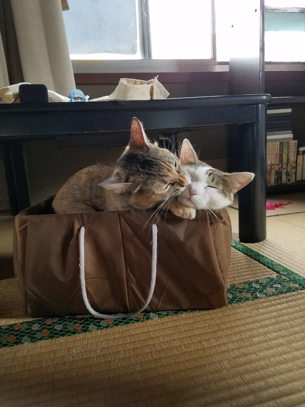 | 特徴(性格など) | 2匹の姉妹で、茶色の小町は世話焼きで恐がりの甘えん坊で、白色の花町はクールな少しだけ甘えん坊。生まれた時から2匹一緒にいて、お互いが助け合って支え合っており、仲良しです。 | ||
