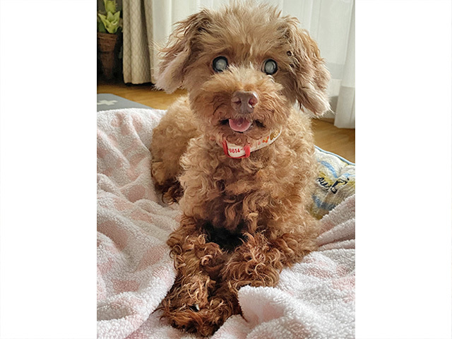 | 特徴(性格など) | ■ 基本情報 ・管理番号 【200514-18】 ・犬種・性別・名前(仮) トイプードル ♀ 伊代 ・年齢・体重 推定7~9歳 体重 3.7kg(適正) ・特徴 毛色はレッドです。一部白っぽい毛がチャームポイントです。 ・性格 いつも人を追いかけてくる甘えん坊です。 お手入れなども大人しくさせてくれる穏やかな性格です。 ■ 暮らしについて ・日常過ごす場所 普段はリビングでフリーで過ごしています。寝るときだけケージに入ります。 ・トイレ 室内でも屋外でもします。シートの認識はあるようですがまだ練習中です。 時々自らシートに行ってちゃんとできるようになってきました。 いつもではありませんが食糞をすることがあります。 ・散歩 楽しそうに元気に歩きます。多少落ち着きがない時があります。 ・お留守番 フリーで問題なくできています。 ・外出 車酔いはありません。車内でキャリーの中におとなしく入っています。 ・お手入れ シャンプー、耳ケアなどは素直にさせてくれます。 ブラッシングは皮膚の乾燥が落ち着くまで様子を見ていますが素直にさせてくれます。 ・他犬との関係 お散歩で会う犬に対しては少し嫌がります。 室内で一緒に過ごす犬とは問題はありませんが、目が見えないため注意が必要な場合があります。 ・人との関係 素直で人懐っこくとても甘えん坊です。 ・お願いしたいこと トリミング必要犬種ですので定期的なトリミングをお願いします。 乾燥が治まるまではブラッシングは控えていますが保湿ケアが必要です。 乾燥はかなり改善していますので改善後は日々のブラッシングをお願いします。 ほとんど目が見えないせいかフローリングが苦手です。家具の配置などの配慮や滑りにくい環境が望ましいです。 ■ 医療管理について(実施日) ・混合ワクチン 〇 5種(4/30) ・狂犬病予防注射 × (近日接種予定) ・フィラリア抗原検査 - (5/12) ・不妊手術 〇 (引取時避妊済 5/21確認) ・マイクロチップ 〇 (4/30) ・健康チェック 〇 (5/12) ・スケーリング 〇 (5/21) ・便検査 〇 ・その他の医療措置 フロントライン(5/12) ドロンタールプラス(5/12) 顎骨折箇所固定処置(5/21) 血液検査、エコー・レントゲン検査、喉元歯肉炎由来化膿痕整復 ・必要な継続医療 顎骨折固定箇所経過観察中。固定が確認でき次第ワイヤーを外す処置をする予定です。 ・現在の一時預かり先 神奈川県横浜市 ・預かりスタッフ ぽっぽ ・預かりブログ CarinaPOPPO(2020/6/25~) ・https://ameblo.jp/calinapoppo/ ・移動前 預かりブログ ちばたりあんな「伊代ちゃん」(2020/5/25~6/25) ・http://chibatarianna.jugem.jp/?cid=263 ・引取時の様子 ・http://chibatarianna.jugem.jp/?eid=6445 |