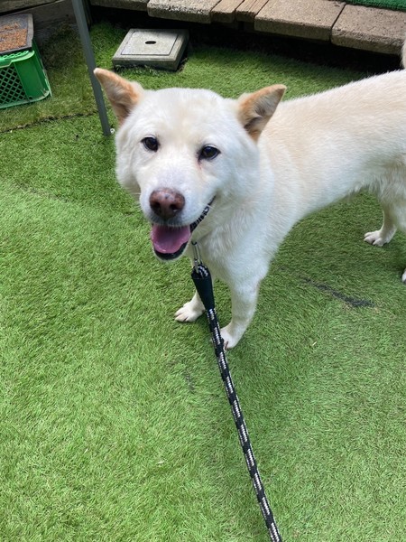 | 特徴(性格など) | ずっと重い鎖で短く繋がれたままお散歩も無し、ネグレクトされていてレスキューした8〜9歳位の可愛い白の紀州犬mix風、三角の立ち耳(耳は茶色)体重15キロ、シニアの男の子ですฅ•ﻌ•ฅ ご飯だけ与えられ、撫でられたり触れ合ったり、人からの愛情を知らぬまま、排泄物まみれの環境の中で暑さ、寒さ、雨風にも耐えるしか無く必死に生きてきました( ; ; ) でも、そんな状況のままでいたより、保護する事が出来て良かったと考え、温かい本当の家族を見つけたい、これからは当たり前の生活、幸せを知ってほしいと願っております☆⭐︎ この子の様子を撮影した動画もございますので是非ご覧いただきたいです♡ 基本的に人懐こく尻尾フリフリで喜んでくれて人間不信になっている様子も無く、初対面でも頭や身体を撫でても、目ヤニを拭いたりブラッシングをしても、気持ち良さそうにされるがままでした。 手から上手におやつも食べますしお散歩も嬉しそうにゴキゲンで歩きますが、テリトリー意識が強い面もあり、フードガードや、人が咄嗟な動きで近付いたり、寝床となっていた場所に近付くと噛む行動が見られました。色々な経験値が乏しい事もありますしトレーナーさんの元でケージ越しに他犬との対面や室内での日常生活から慣れていってもらう事になりました(^^) 最近では環境にもすっかり馴染んでノビノビとリラックスして過ごしながらボール遊びもしています。 当初の現場では、人の姿を見ても吠えるより嬉しそうに尻尾を振っていたのですが今はトレーナーさんの姿が見えると甘え鳴きしたり、こっちに来てよ〜構って〜と呼ぶ様に吠えています。 他犬とは、去勢済みの小型犬や女の子となら仲良く同じサークル内で過ごせていますが、未去勢の男の子には威嚇をするそうです。 先住犬猫の居ないご家庭で、日本犬の性質に理解のある方、飼育歴のある方、犬の扱いに自信と経験の豊富な方が望ましく思われますm(_ _)m お散歩はさほど引きも無く上手に歩けます(^^) 適切に制御し、躾や散歩などの運動の時間を充分に取ることの出来るご家庭を希望しておりますm(_ _)m 急がずこの子のペースを見ながら、焦らず構い過ぎずにゆっくり長い目で見守りながら、寄り添い愛情を持って接すれば、どんとこい(^^)と広い心で迎えていただければ! きっと新しい家庭にも馴染んでいけるのでは、と思っておりますฅ•ﻌ•ฅ 現在千葉県で保護されながら新しい本当の家族を待っています♡ ⭐️外飼いではなく必ず室内飼育で、なるべくお留守番の少ないご家庭。 ⭐️犬の飼育経験があり愛情を持って犬をしっかり躾することが出来る方、お散歩や運動、コミュニケーションに充分時間をあてられる方、場合によりトレーニング教室なども視野に入れて考えてくださる方。 ⭐️新しい環境に慣れるまではトイレの失敗もあるかもしれません。今のところ室内、ケージ内に設置したトイレでは一度もせず、外に出た時にしています。何かと手がかかり大変だと思いますが(L字型のトイレ、ペットシートを用意など)覚悟と根気・理解で受け入れて下さる方m(_ _)m ⭐️吠えた時の声はそれなりに大きめです(^^)吠えても大丈夫なご家庭。 以上の点を踏まえ、この子の置かれてきた状況、傷ついているであろう心をご理解のうえ、全て受け入れ寄り添っていただけるご家庭で可愛がっていただきたいと祈っております。この子は身勝手な人間による被害者で何も悪くありません。 家族の一員として生涯大切にしてくださる優しいご家庭とのご縁が結ばれ幸せになれます様に♡ 1日も早く温かな愛情を目一杯注がれながら、元気に幸せに生きてほしいです。人間より遙かに短い生涯です。 本当の幸せを掴む為、毎日頑張って優しい素敵な里親様とのご縁を待っています。 悲しい事にこの世の中、人間に飼われないと犬は生きていく事が出来ません。 捨てる飼い主、探さない飼い主、医療にかけない飼い主、虐待する飼い主…飼い主を選ぶ事も出来ません。これからのこの子を生涯大切に可愛がって下さる優しい素敵な里親様、どうかお願い致します。きっと唯一無二のかけがえのない家族の一員になると信じて願っております。 もう二度と悲しく辛い目に遭わせたくありません。 本当の愛情、温もりを知ってほしい、辛かった分、寂しかった分、まだこれからの犬生はのびのびと幸せいっぱいに愛し愛されて、生きてほしいと願っております。家族の一員に迎え、この子とずっと一緒に暮らして頂けませんか。 何卒宜しくお願い致します(๑•ᴗ•๑)♡ https://dog.benesse.ne.jp/lovedog/content/?id=15698 ◆健康状態 ※血液検査の結果、フィラリア陽性でした。 ボルバキア治療を開始し、早期の陰転を目指しています! ※食欲旺盛、元気にしています。 体重15キロ。 ⭐️毎月のノミマダニ予防薬済み ⭐️スケーリング済み(でも元々歯は白く綺麗めでした) ⭐️車酔いはありません。 ★逸走、脱走にはくれぐれもご注意願いま