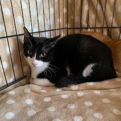 | 特徴(性格など) | 最初は緊張するかもしれませんが、すぐ慣れると思います。慣れるととても甘えん坊で、へそ天で撫で撫でを催促したり、隙を見て?おひざに乗ってきてゴロゴロ言ってたりします。 人も猫も大丈夫で、性格の良い男の子です。 |